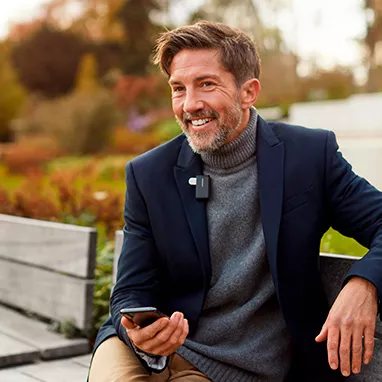 通过奥迪康ConnectClip设备,您可以轻松使用iPhone®苹果手机,Android™安卓手机,或任何其他现代智能手机进行无线通话。ConnectClip将呼叫者的语音直接传送到助听器,而内置麦克风可以清楚地将您所说的内容传送给呼叫者。